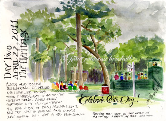 Golf courses are one of my favorite places to sketch. Every year that we can, my husband and I attend The Heritage, a PGA tournament that takes place at the Harbour Town Golf Links in Sea Pines Plantation on Hilton Head Island, SC.